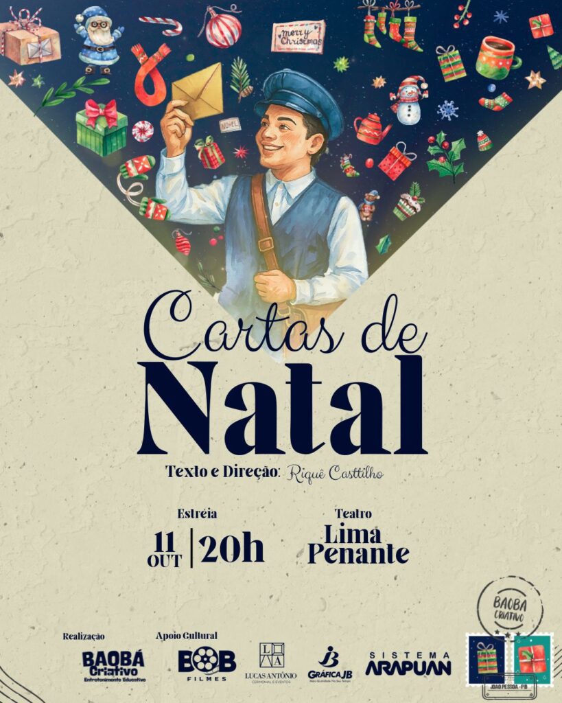 No dia 11 de outubro, João Pessoa será palco da estreia de “Cartas de Natal”, uma produção da Baobá Criativo – Entretenimento Educativo que promete emocionar e divertir toda a família. O espetáculo terá duas sessões especiais no Teatro Lima Penante, às 17h30 e às 20h00, marcando a abertura oficial da temporada natalina na capital.