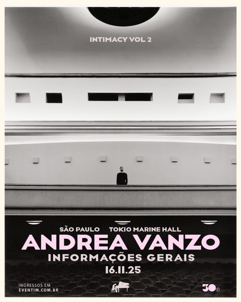 Com uma fusão envolvente entre música clássica moderna e elementos do pop, o pianista Andrea Vanzo vem ao Brasil pela primeira vez para apresentar a turnê Intimacy Vol. 2. O show, marcado para o dia 16 de novembro, no Tokio Marine Hall, em São Paulo, é uma realização da 30e, maior companhia brasileira de entretenimento ao vivo; e os ingressos estão disponíveis para compra pelo site da Eventim (acesse aqui)