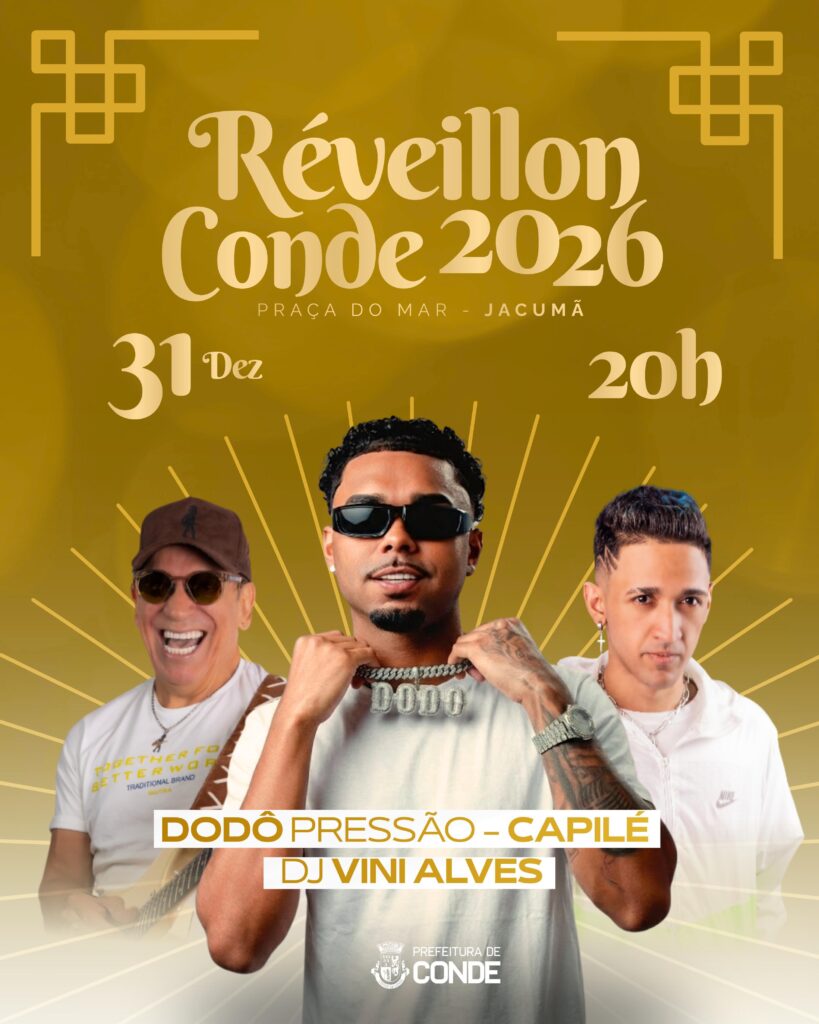 A Prefeitura de Conde anunciou nesta segunda-feira (14) a programação oficial do Réveillon Conde 2026, que será realizado no dia 31 de dezembro, a partir das 20h, na Praça do Mar, em Jacumã.